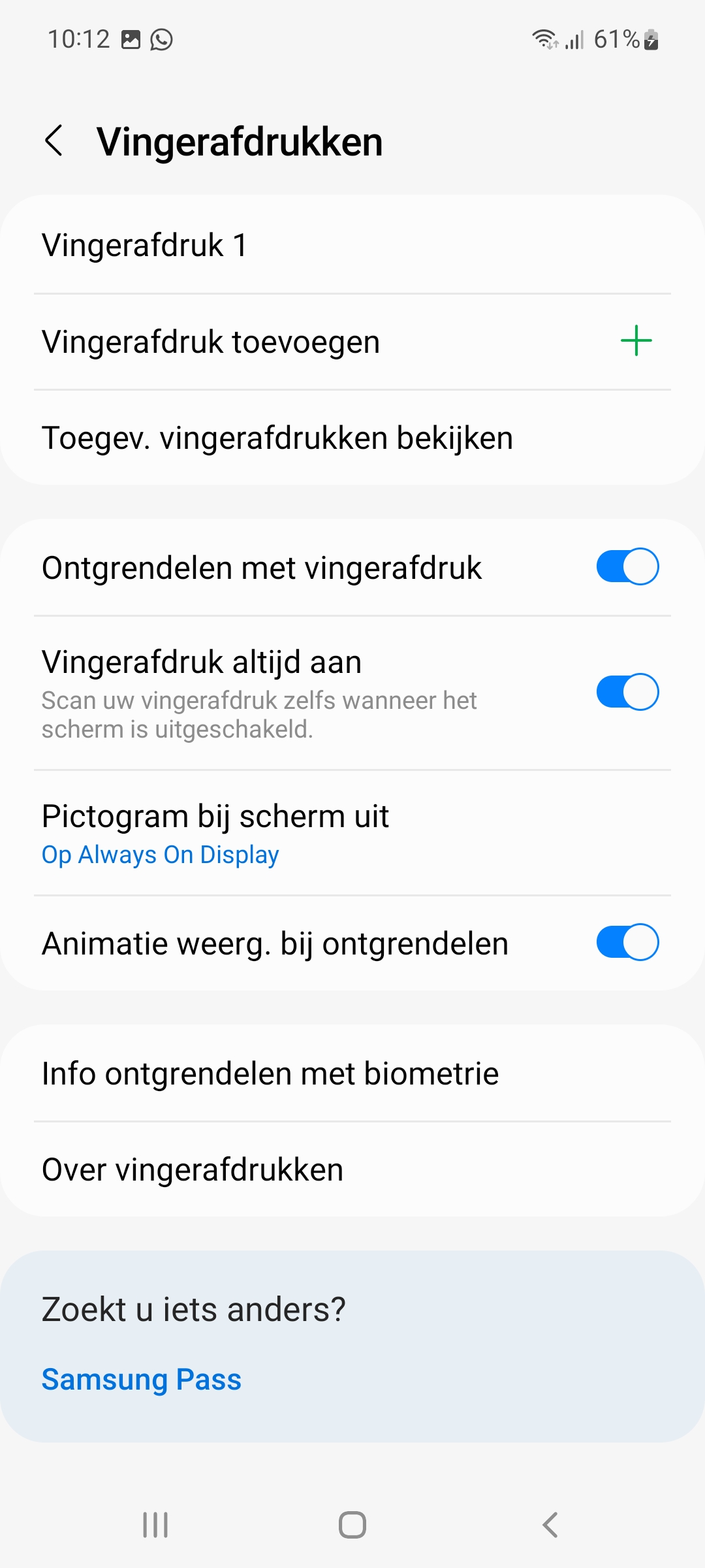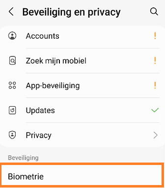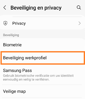 Bij een telefoon met gescheiden profielen (privé- en werkprofiel) dient een vingerafdruk voor een werkprofiel los ingesteld te worden. Een werkprofiel kan geen gebruik maken van de vingerafdrukken van een privé profiel. Volg daarvoor de onderstaande stappen.