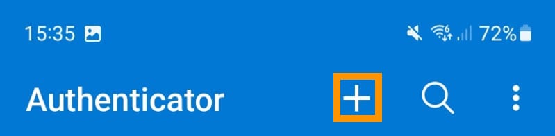 Pak de telefoon en zorg vervolgens dat de Microsoft Authenticator app geopend is. Klik bovenin op het + teken.