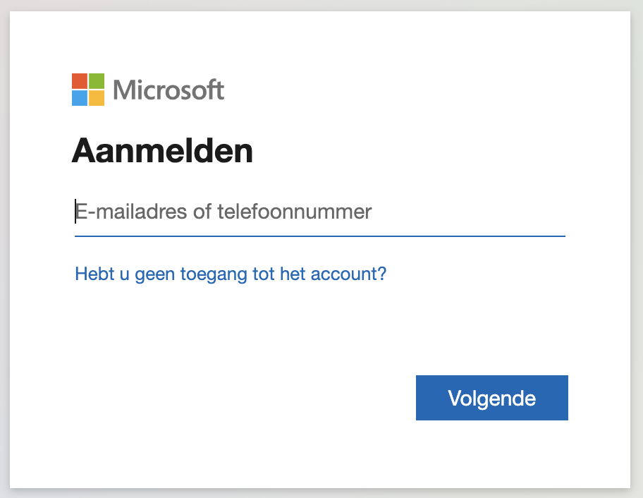 Om in te loggen met uw Microsoft account, dient er gebruik te worden gemaakt van MFA. Hiervoor is is de Microsoft Authenticator app nodig. Volg de volgende stappen bij het inloggen als er om MFA wordt gevraagd.