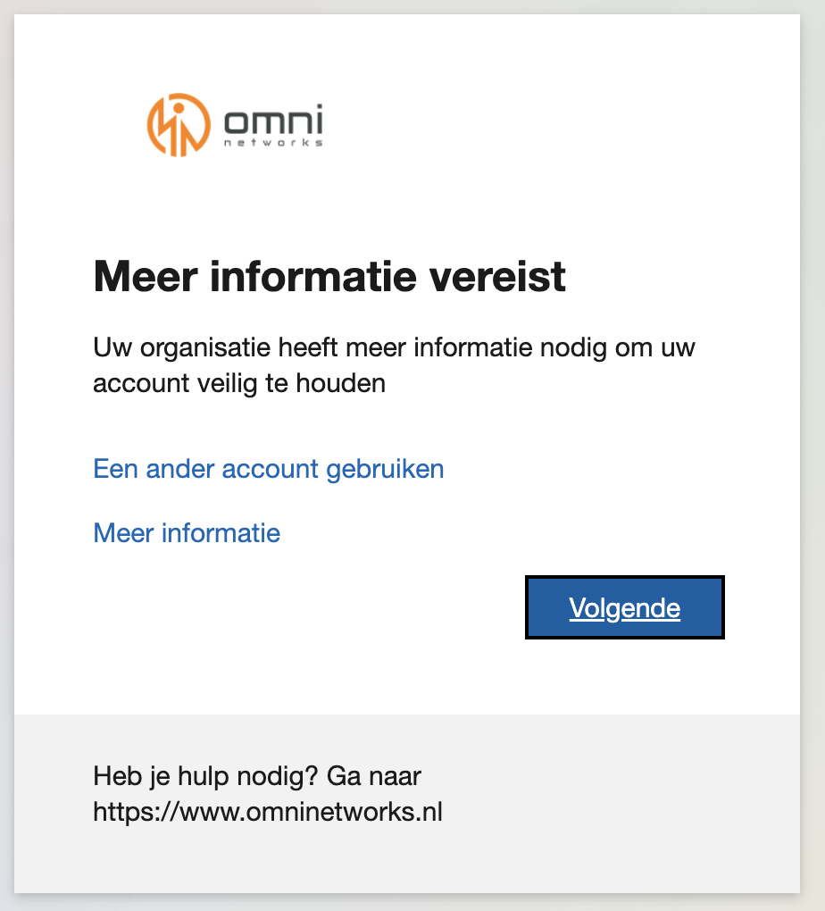 Er is nu meer informatie vereist. Klik op Volgende om verder te gaan.