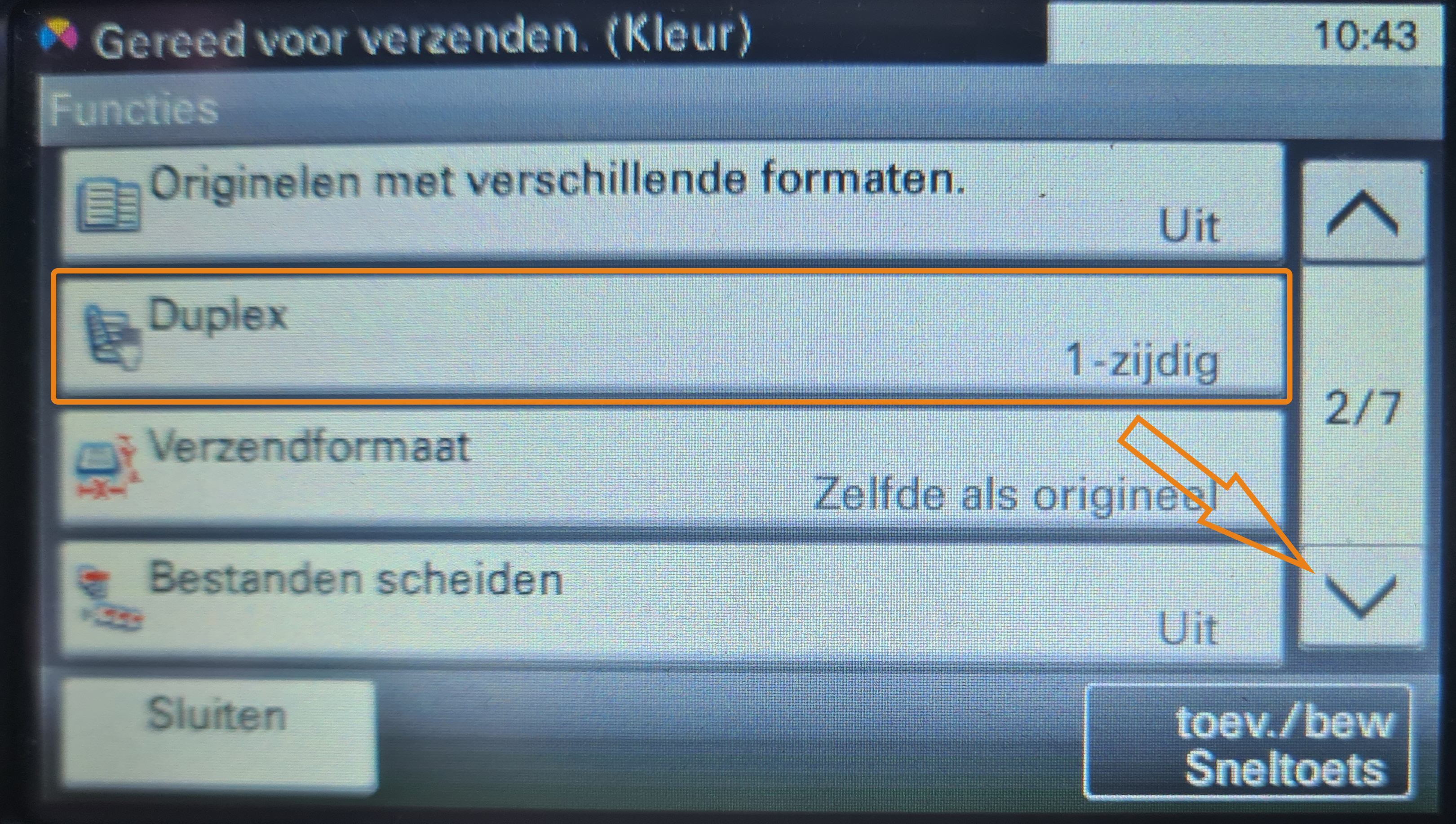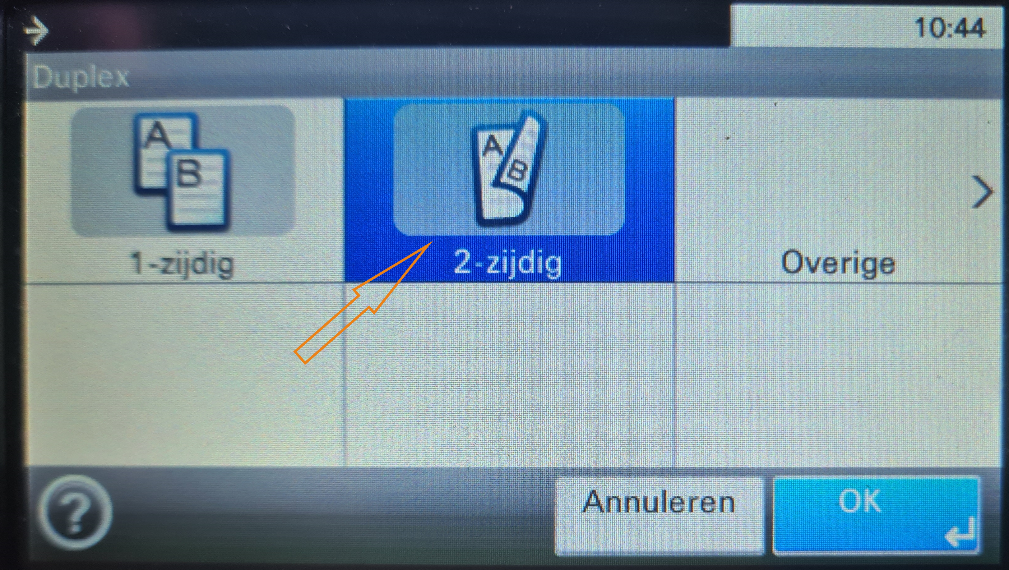 Tik aan de rechterkant op de schuifbalk om naar de 2e pagina te gaan en tik vervolgens op Duplex