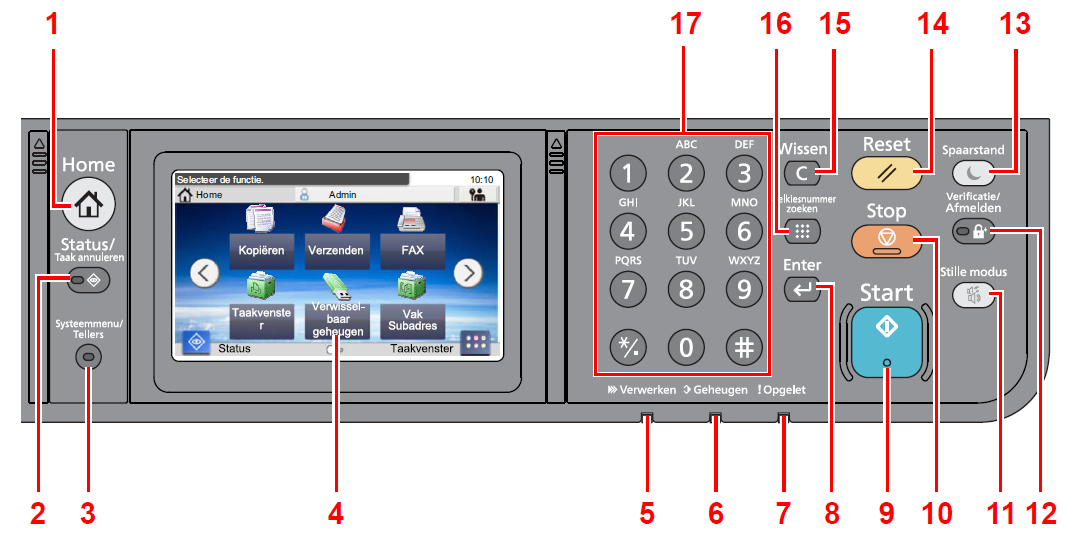 Schakel de MFP in met de aan/uit schakelaar of met de Spaarstand knop (13)