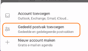 Om gebruik te maken van een gedeeld postvak dient deze eenmalig te worden toegevoegd op een mobiele telefoon.